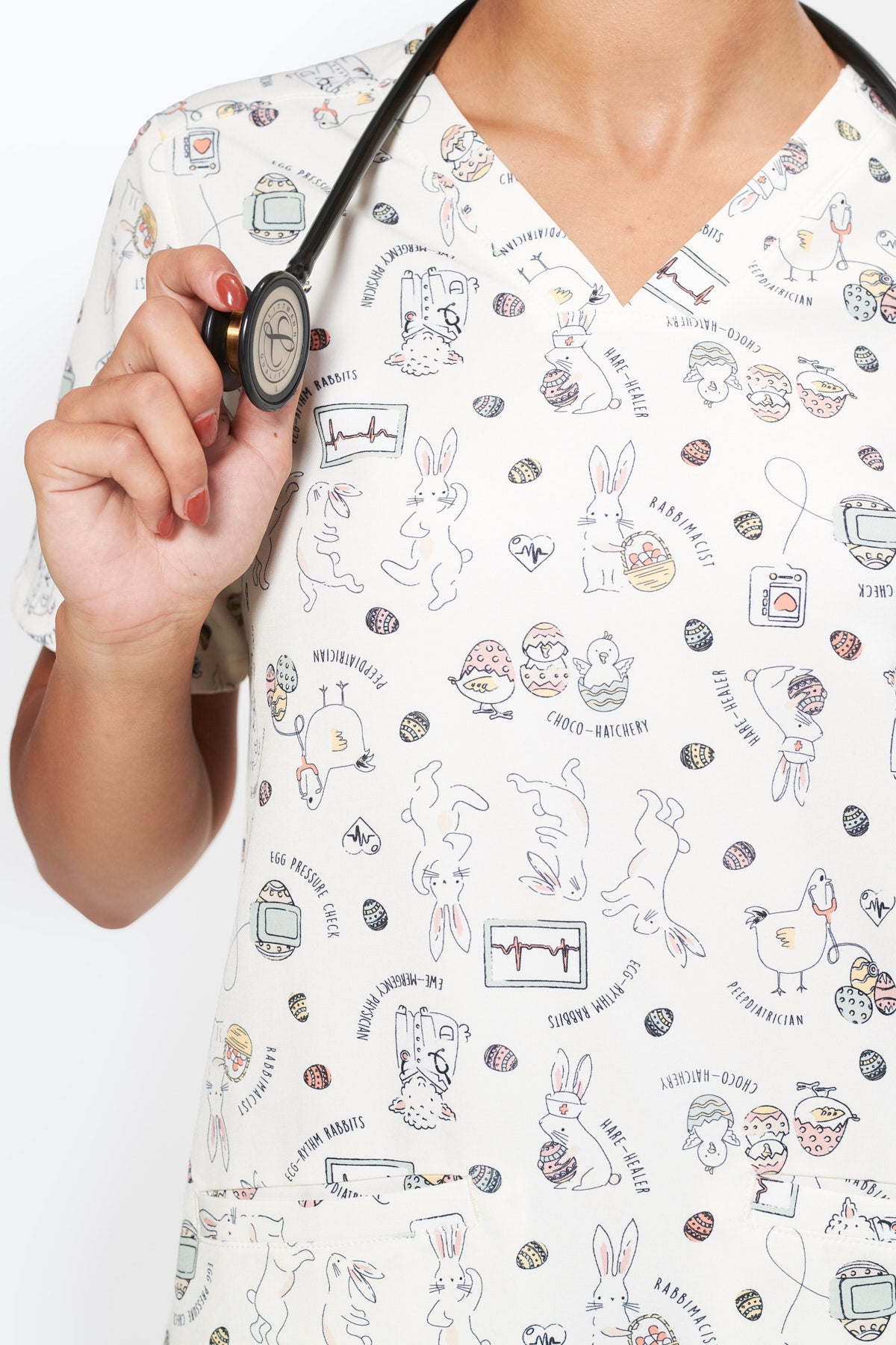 You’d better order an Egg-K-G because our Hoppy Easter scrub tops are heart-stoppingly cute. Like all Dr. Woof scrub tops,they’re:
