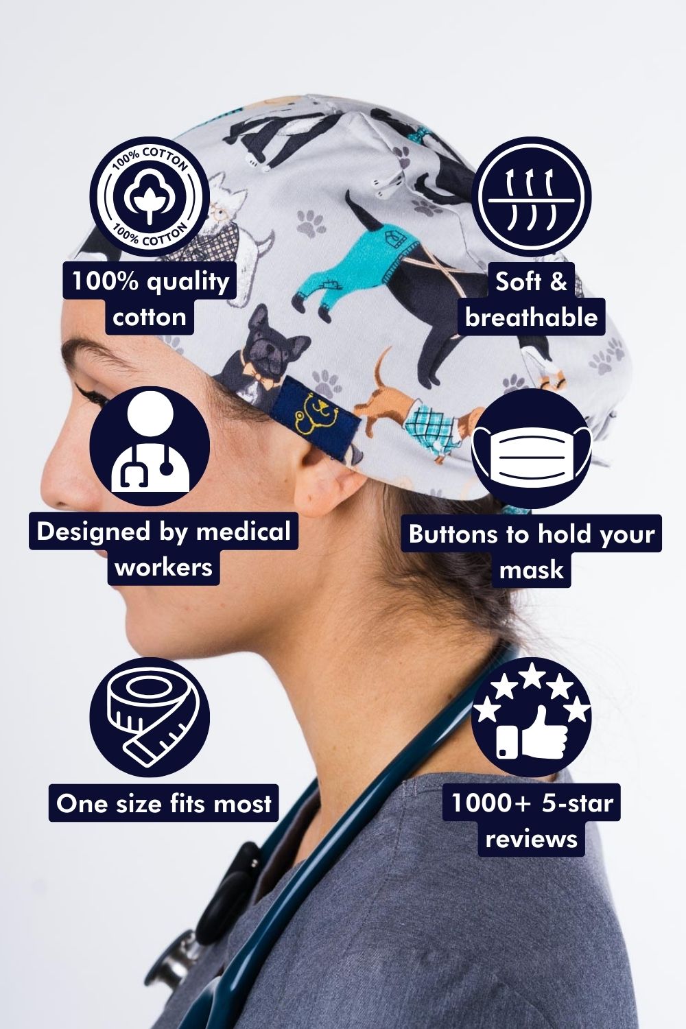If you want compliments every surgery, grab yourself a dr woof scrub cap!