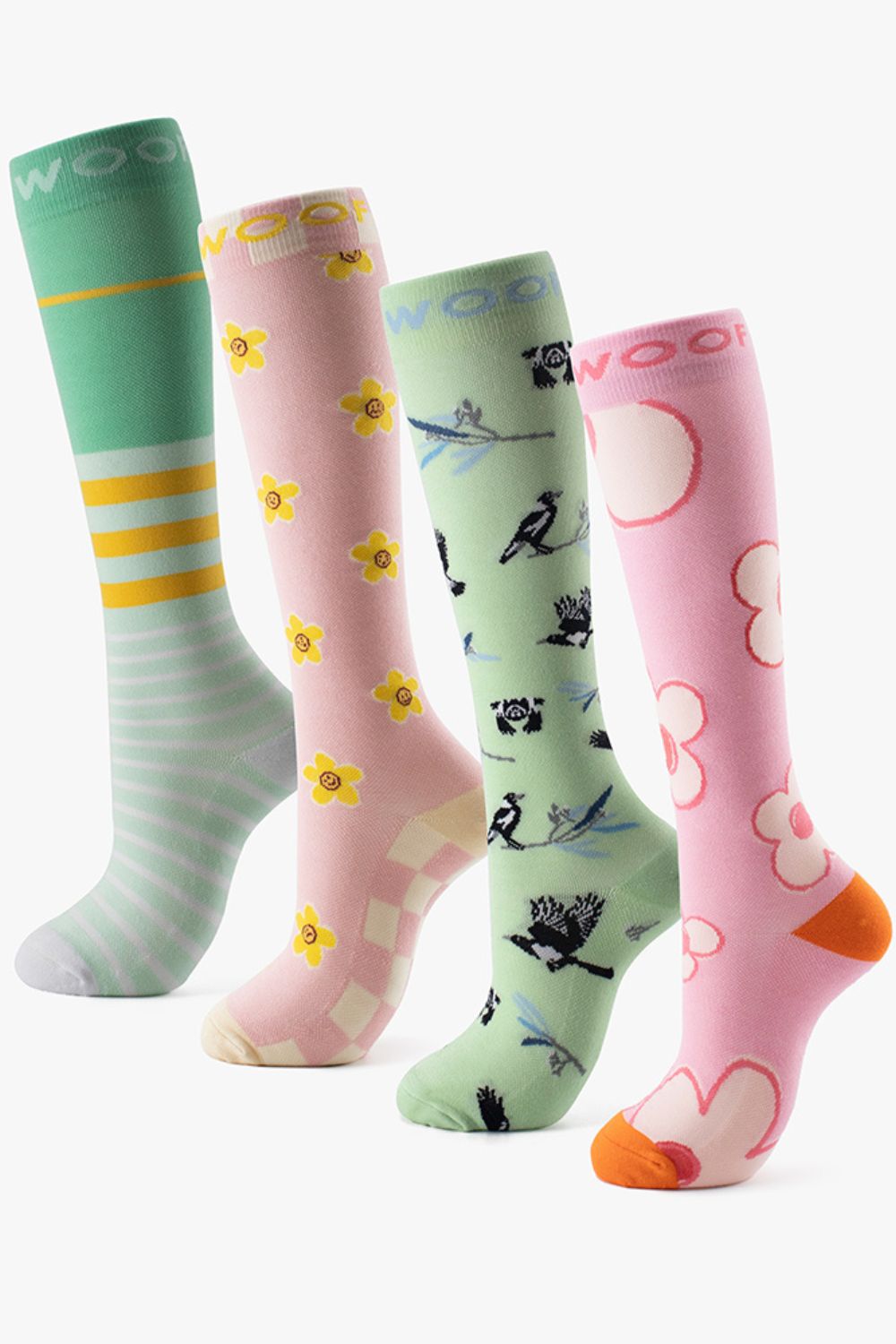 Never settle for ordinary socks again. Experience the luxury of bamboo fabric and the support of 360° seamless compression with 4 pairs of ultra-soft socks featuring fun, playful patterns.
