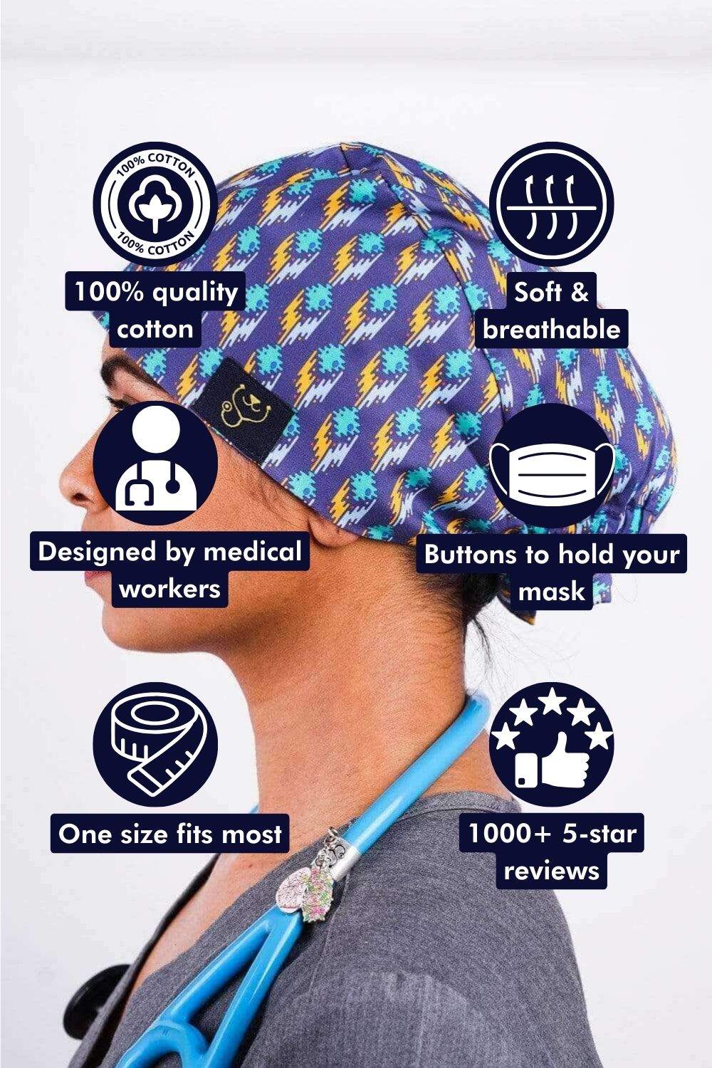 You can’t fight disease with a joystick. But you can stick a bit of joy into your workday with our 100% cotton 8-BIT scrub cap.