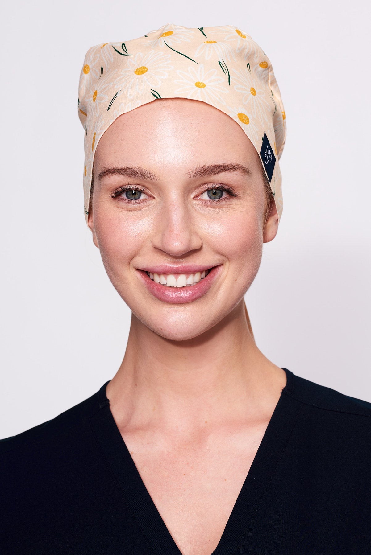 When fluorescent lights, white walls and the smell of bleach get too much – transport yourself to somewhere sunny, summery and sweet with our 100% cotton Daisies scrub cap.