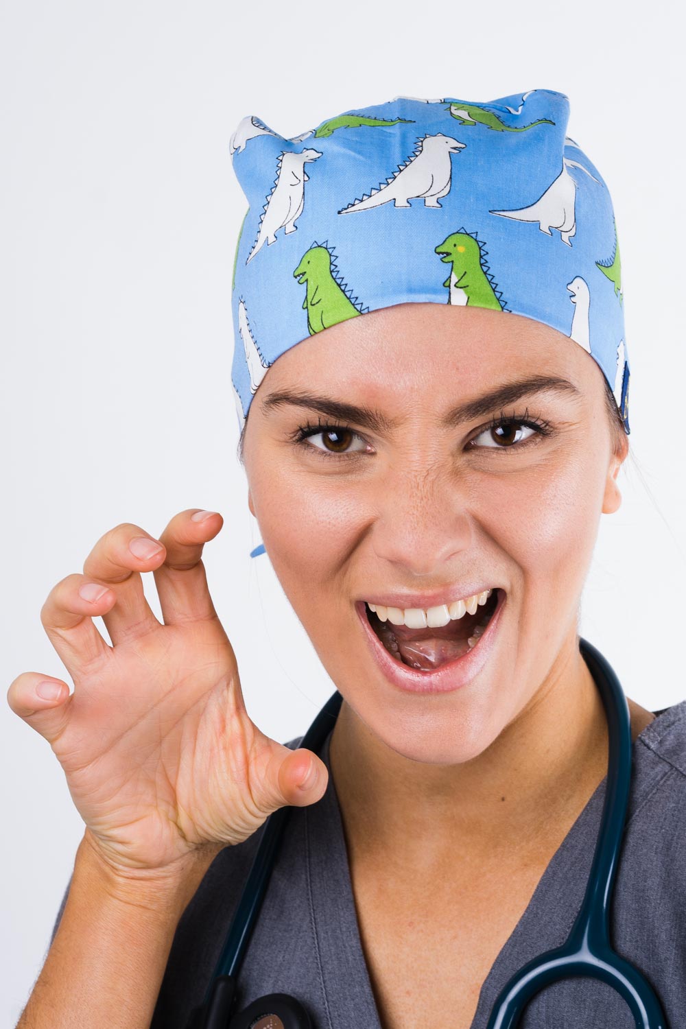 Our team loves our new matching dino scrub caps! They're the perfect addition to brighten up our theatre days and to boost morale in the face of COVID.