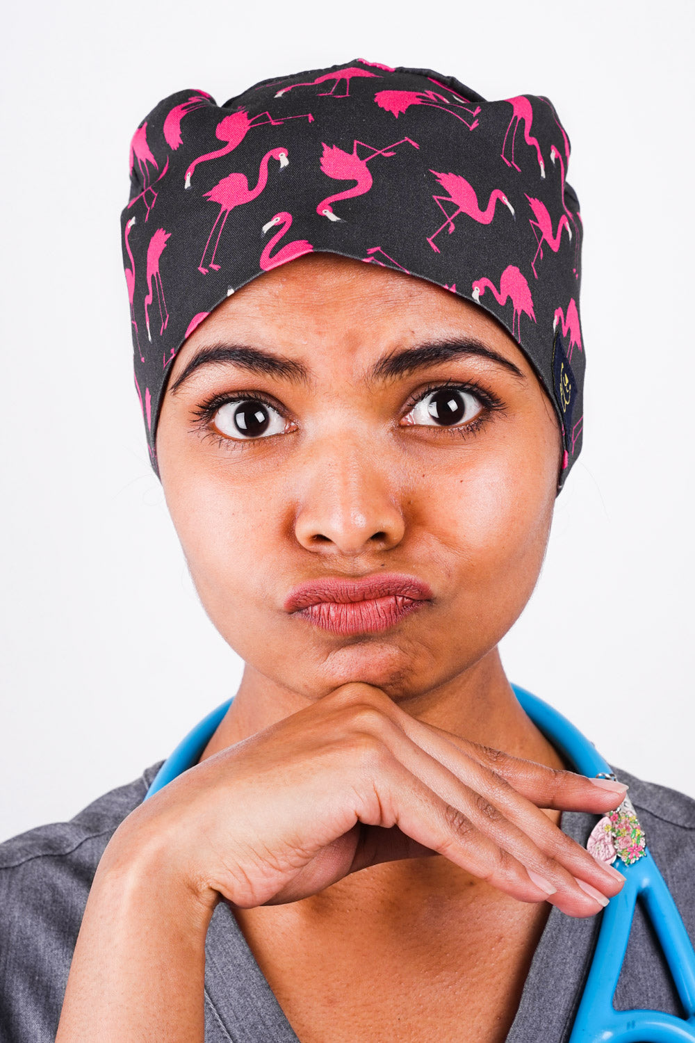 Loving the look and feel of the flamingo scrub cap, my colleagues are envious