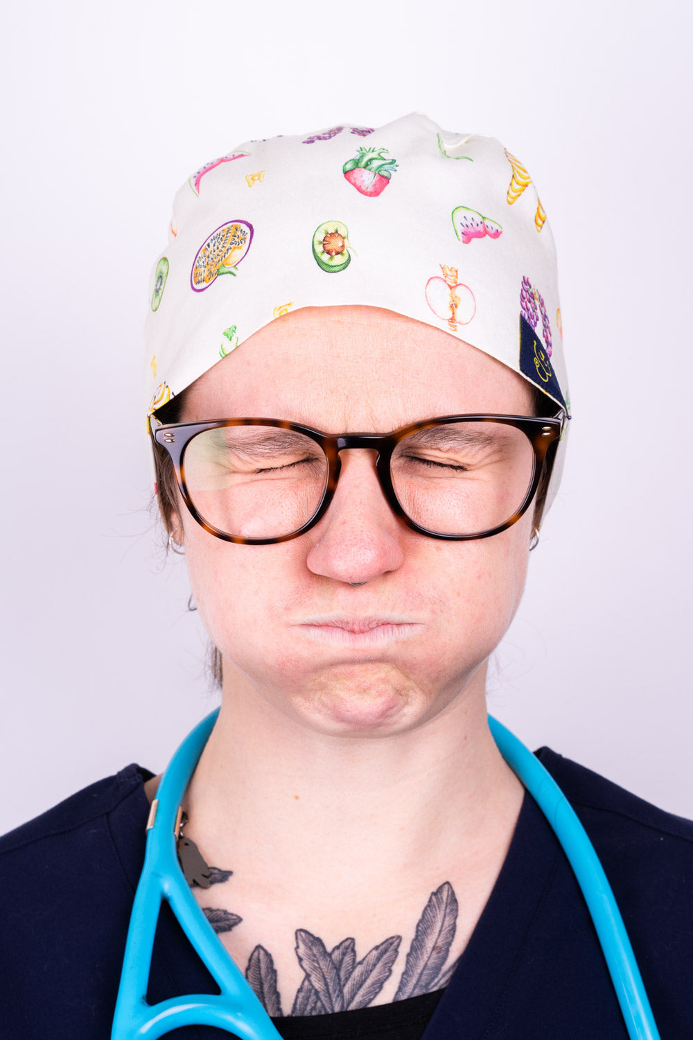 I get so many comments on my Dr Woof scrub hats. I love my new Almost anatomical. It's fun to see colleagues piece together the fruit and veg anatomy. Love the large size for my large brain!