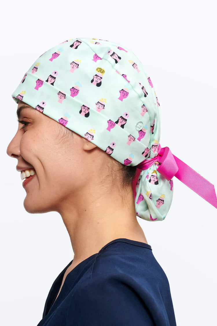 • The ponytail pouch can stretch up to 16" in circumference. That’s roughly the size of a cantaloupe.